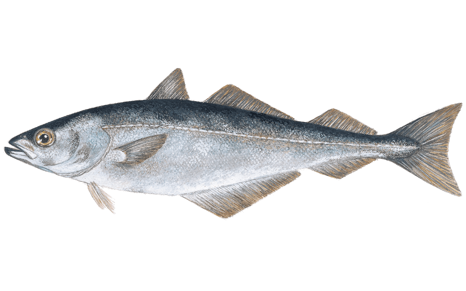 Svartkjaftur: © Scandinavian Fishing Year Book, Illustration of a Micromesistius poutassou - Blue Whiting