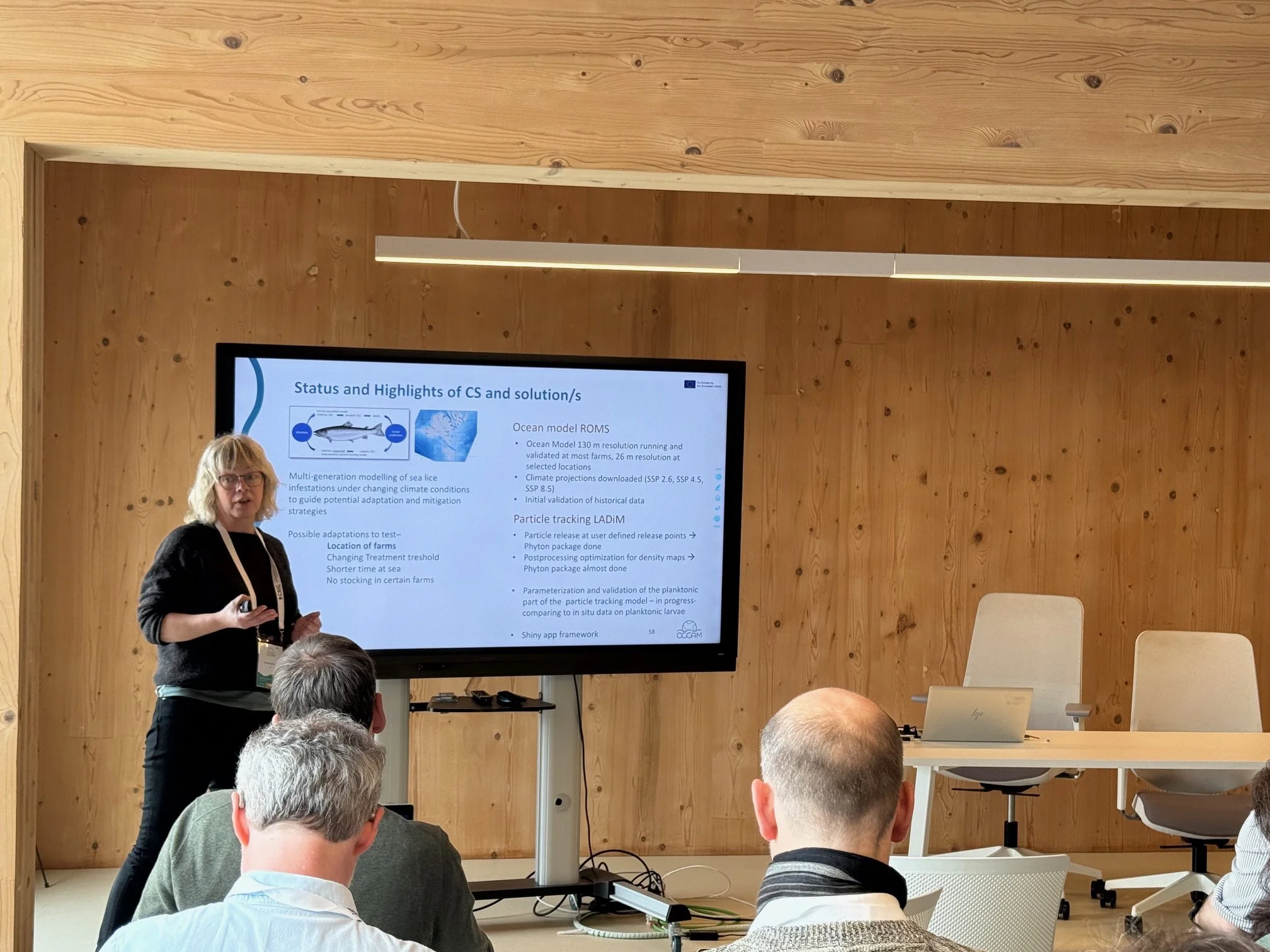 Í Føroyum arbeiða vit, saman við føroysku samstarvsfeløgum okkara, Firum, Avrik og Hiddenfjord, við hvussu laksaalingin skal tillaga seg til veðurlagsbroytingar, við serligum denti á hvussu hitabroytingar í sjónum fara at ávirka lúsatrýstið. Í hesum sambandi menna vit eitt amboð, sum kann stuðla hvussu umsiting og alifyritøkur best kunnu tillaga seg til hetta. Sjókovin fer at gera búskaparligu greiningarnar í hesum arbeiðnum.